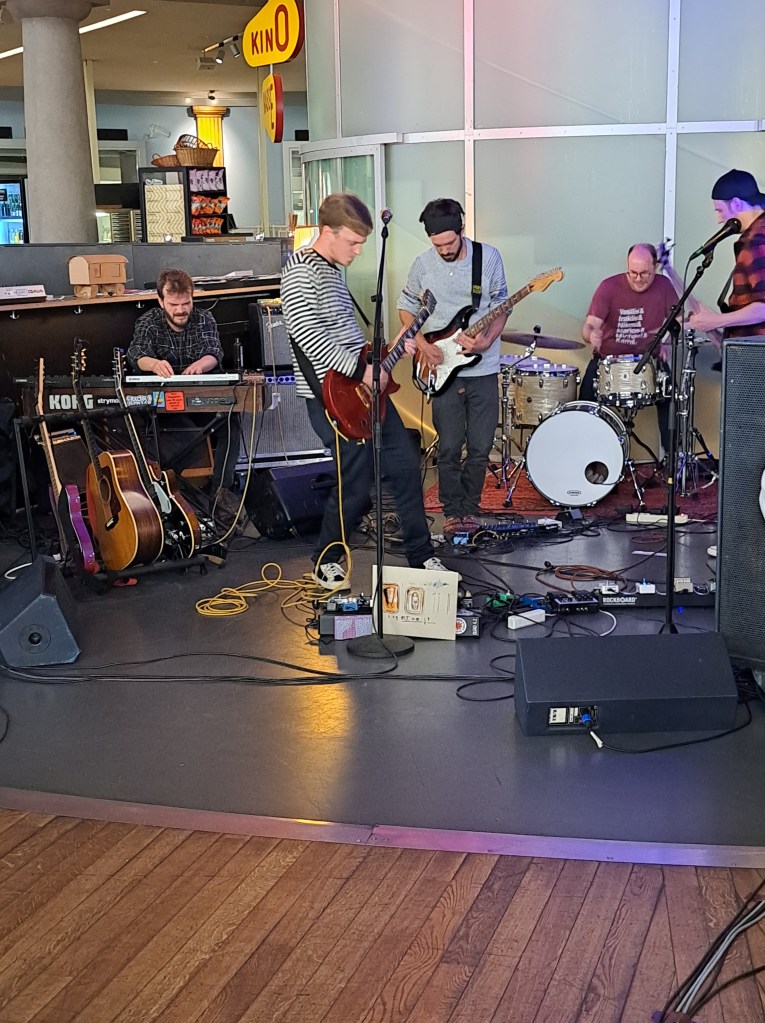 Kam man aus der herbstlichen Novemberkälte in das wohlig warme Bourbaki sah man auf den ersten Blick nichts, was auf ein Konzert hätte hindeuten können. Wenn man sich dann aber in den hinteren Teil des Bistros begab, wurde man fündig. PA, Verstärker, Gitarren, Bässe, Keyboards, Schlagzeug und sogar ein Saxophon liessen auf einen interessanten Konzert-Abend hoffen.