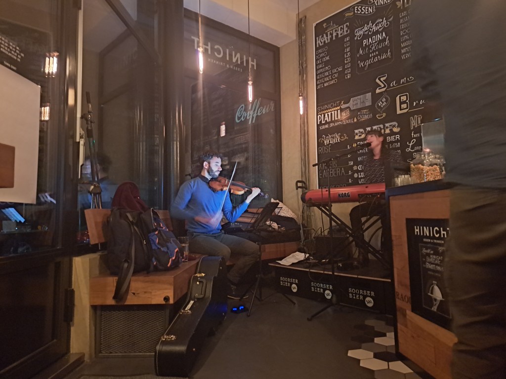 Auf dem Weg zum Hinicht an diesem Abend war es schon ziemlich herbstlich. Raschelnde Blätter in den Bäumen, ein kühler Wind der einem um die Ohren zog, da war man froh in die wärmenden vier Wände der Bar an Dornacherstrasse eintreten zu können.