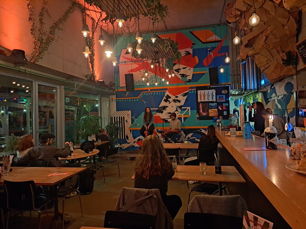 Brino und ihr Pianist (ich hab mir leider seinen Namen nicht aufgeschrieben) waren dann nicht weniger emotional unterwegs. Ebenfalls Songs über die Liebe und das Leben gesungen auf Deutsch, so konnte man sich noch mehr hineinfühlen. Die selbst komponierten Songs waren poetisch und leidenschaftlich vorgetragen ohne Schnörkel oder Dekoration einfach echt und ehrlich. Auch den Covers verlieh sie ihre eigene Note und sie fügten sich so ohne Probleme in ihre eigenen Songs.