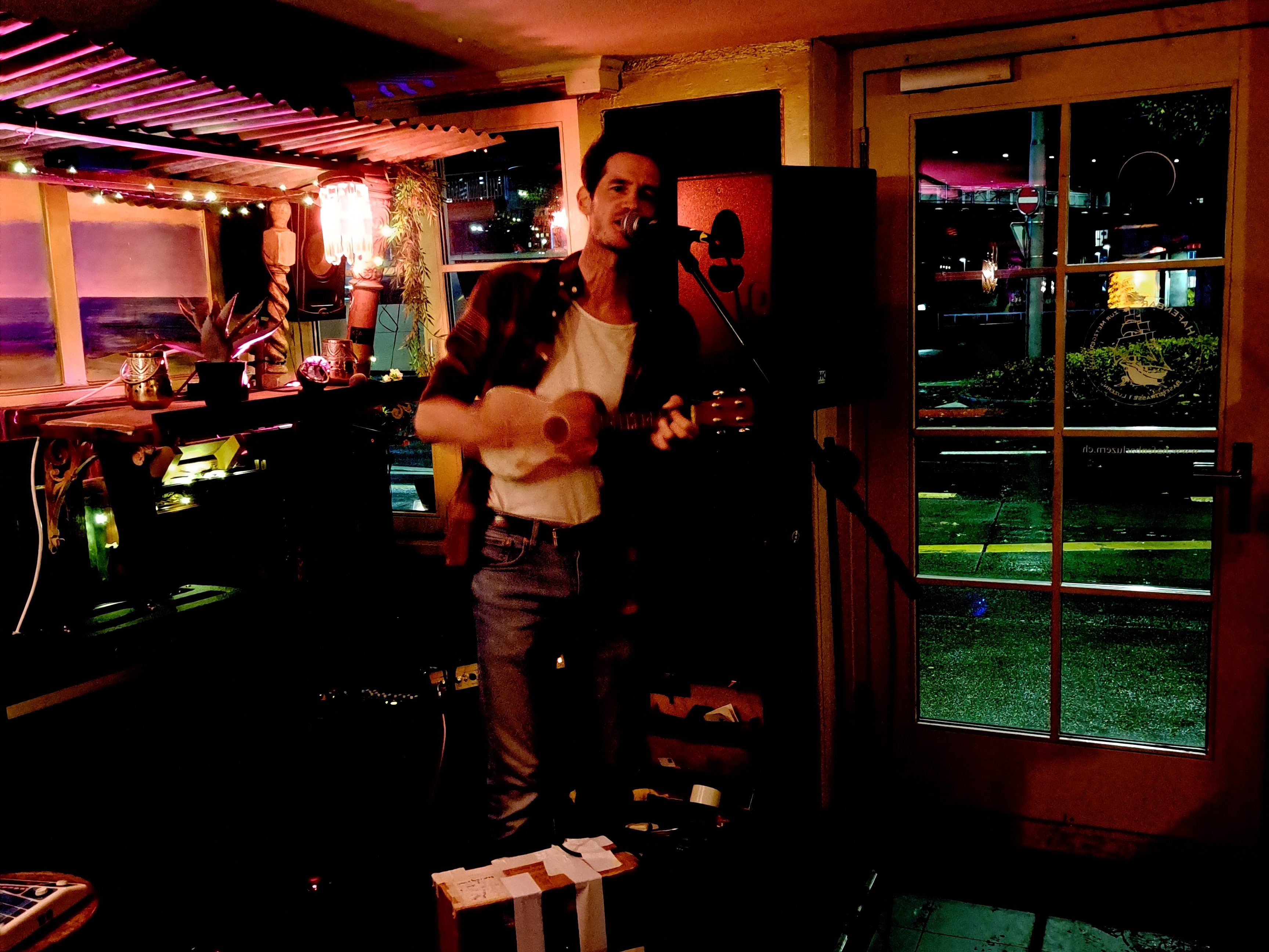 So spielte Müllmaa energisch und bestimmt auf diesen vier Nylon Saiten und sang von Gott und der Welt. Gesellschaftskritisch und inspiriert vom echten Leben präsentierte er lyrische Kreationen, die mit einer solchen Intensität vorgetragen wurden, dass alle im Raum völlig mitgerissen an jeder gesungenen Silbe hingen. Auch wurde das Publikum dazu aufgefordert allfällige Ideen für Songs einfach reinzurufen. Aus diesen Wortfetzen wurden kurzerhand versucht neue Songs zu kreieren sowie nach Tipps fürs Nasenhaar trimmen gefragt.