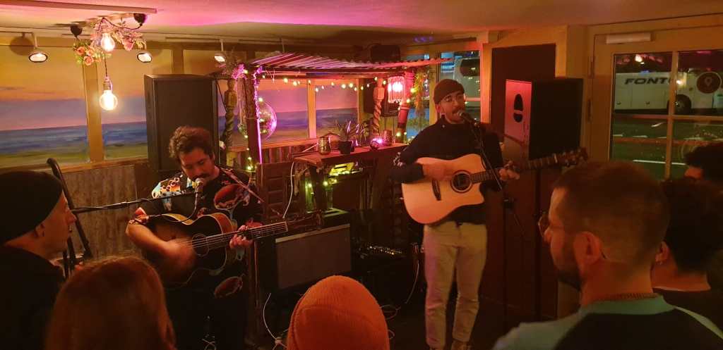 Das Duo aus Nidwalden hatte Songs mit virtuosen Gitarrenläufen und wunderschönen Gesangsharmonien im Gepäck und wusste ganz genau wie sie ihr Publikum zum tanzen und mitsingen animieren konnten. Mit viel Talent und viel Humor hatten die zwei die Hafenbar völlig im Griff und liessen sich auch von einer rausgeflogenen Sicherung nicht aus dem Konzept bringen.