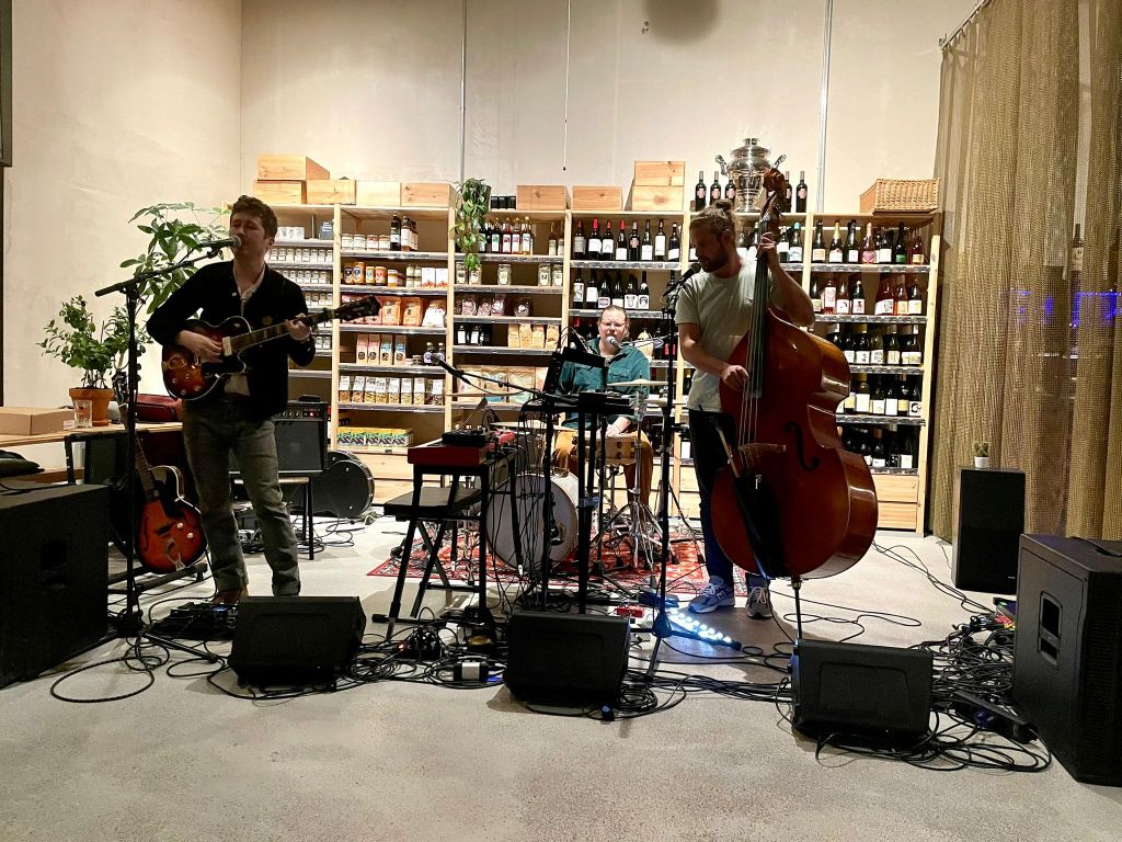 Dieses mal gab es wieder an zwei Orten Musik zu geniessen und glücklicherweise waren diese zwei Orte ziemlich nahe beieinander. Im Onkel Salamt konnte man sich an diesem Dienstag Abend, gemütlich sitzend, Into Orleans einverleiben. Die drei Musiker, die dieses Jahr auch schon als Teil von Maple Tree Circus auf der Ravioli Bar Bühne standen, waren mit einem ganzen musikalischen Arsenal angereist. Gitarren, Kontrabass, Synthies, Schlagzeug alles war da und eingerichtet. Die drei wussten dann auch wie die mitgebrachten Instrumente zu bedienen waren. Mal laut, mal leise aber immer in einem wunderbaren Zusammenspiel von Klängen. Es war schwierig festzulegen in welchem Genre man die Musik nun verorten sollte aber eigentlich war das auch gar nicht nötig. Jeder Song war eine neue Entdeckungsreise und man war gespannt was man wohl als nächstes finden würde.