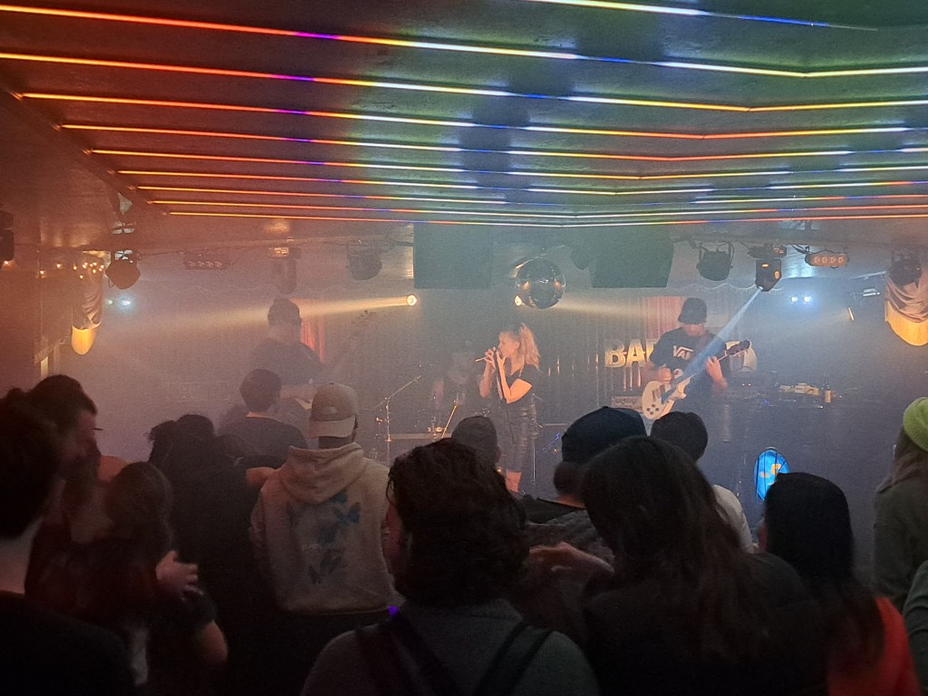 Zuerst war The Wolve’s Cave auf der Bühne. Auch wenn es ihr (mehr oder weniger) erstes Live-Konzert war beherrschte die, vor 3 Jahren gegründete Band, das Mitreissen des Publikums schon voll und ganz. Da wurde mitgeklatscht, mitgetanzt und vor Begeisterung gejohlt. Musikalisch hatten die vier Musiker:innen auch einiges zu bieten. Eingängige Rocksongs mit Gitarrensoli, treibenden Bässen und der fesselnden Stimme von Steffi Bieri. Da konnte man gar nicht anders als mindestens mit den Füssen zu wippen.