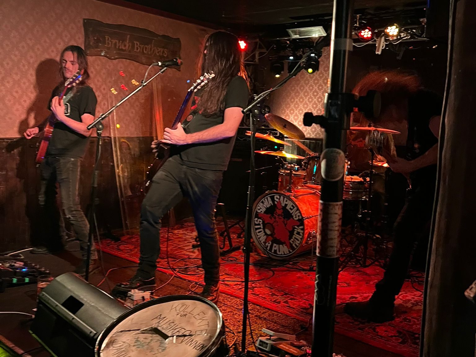 Wenn man sich statt in die Neustadt lieber Richtung Baselstrasse aufgemacht hatte wurde man im Bruch Brothers wärmstens empfangen. Allerdings war der Schnee zwar da, die Band aber noch nicht. Der Frontmann von Dave & the Dudes musste sein Auto am nächsten besten Ort abstellen und einen Powerwalk ins Bruch Brothers hinlegen. So wurde kurzerhand das Line-Up geändert und Simia Sapiens war zuerst auf der Bühne. Als Stoner Punk Rock bezeichnen Simia Sapiens ihre Musik und Stoner Punk Rock lieferten sie auch. Die Band brachte mit ihren schweren und vollen Tönen den Restschnee auf den Kleidern des Publikums zum schmelzen.
